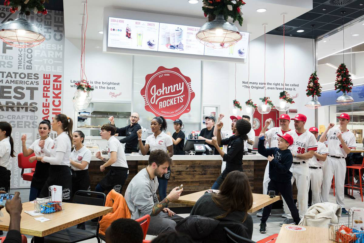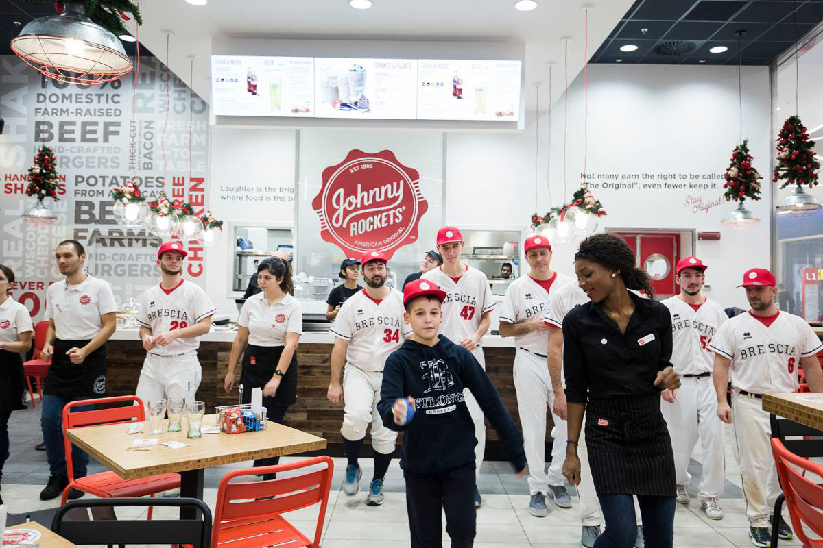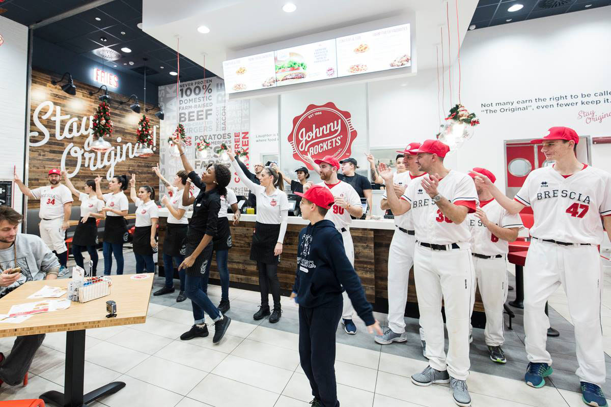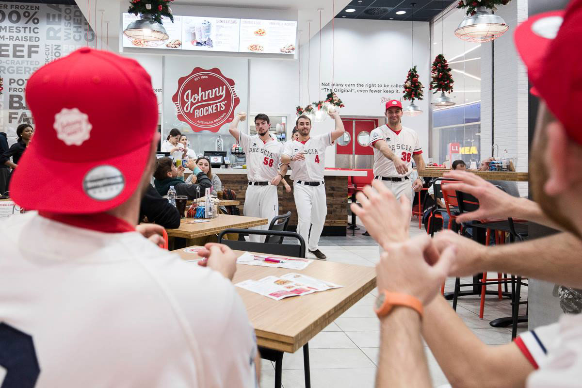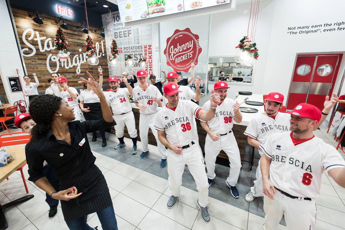 Con un perfetto fuoricampo, i ragazzi del CUS Brescia Baseball conquistano lo store di Johnny Rockets, divertendosi con il team e i clienti, tra lanci di burger, balletti e decine di autografi!